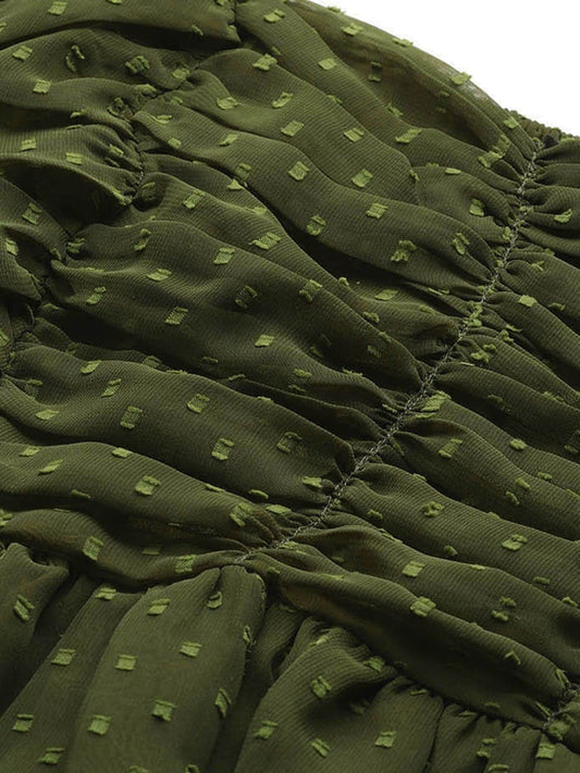 Slenor Olive Green Sweetheart Neck Puff Sleeve Peplum Top
