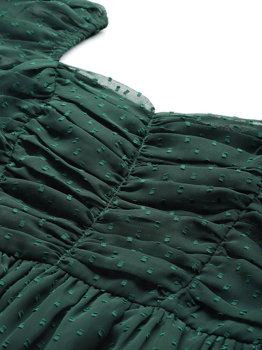Out of StockSlenor Green Sweetheart Neck Puff Sleeve Peplum Top