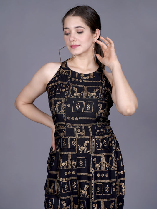 Out of StockWomen Black & White Floral Printed Basic Jumpsuit