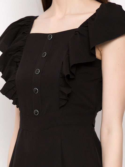 Women Black Solid Cold-Shoulder Fit & Flare Dress