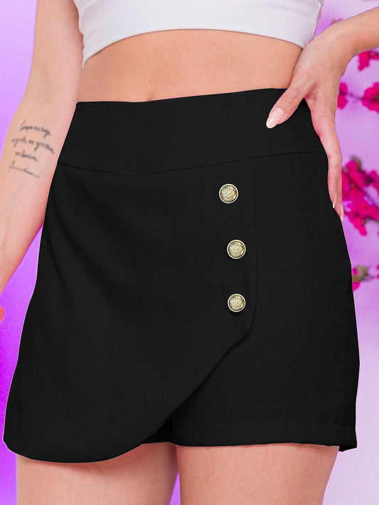 Black High-Rise Wrap Curved Hem Mini Skorts