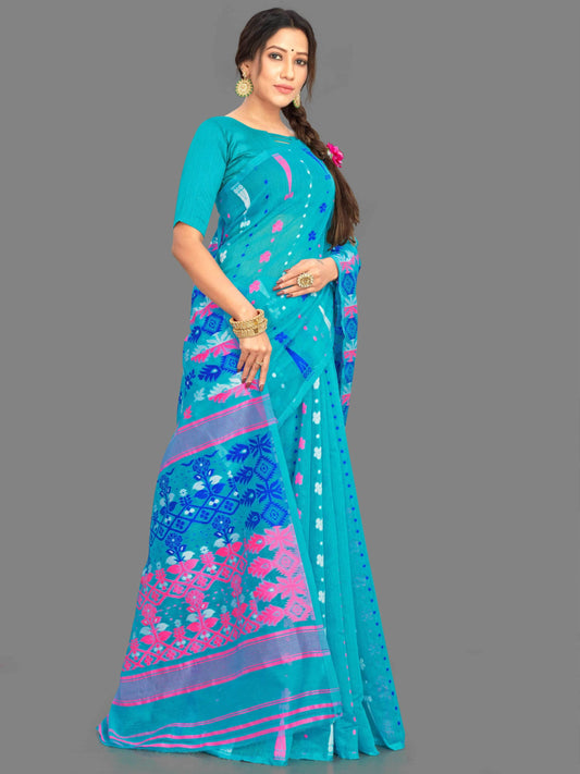 Out of StockBlue & Pink Woven Design Jamdani Jacquard Saree