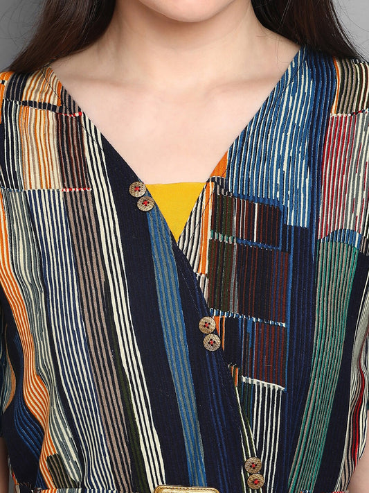 Out of StockBlue & Orange Foil Printed Basic Jumpsuit