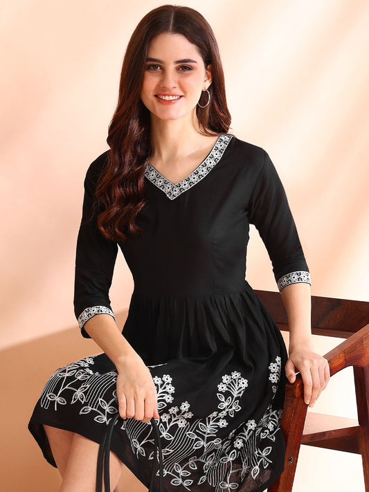 Floral Embroidered Fit and Flare Dress