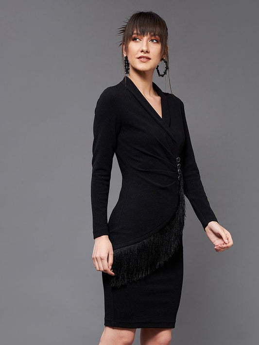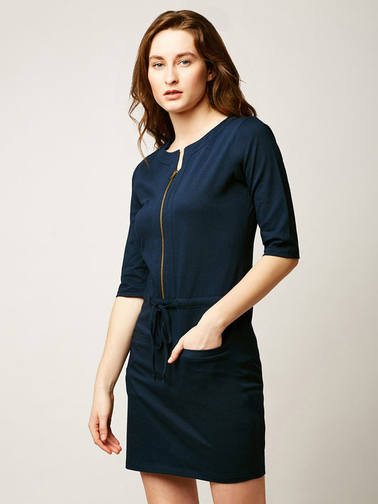 Women Navy Blue Solid Square Neck Bodycon Mini Dress