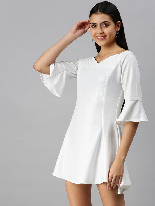 SHOWOFF White Solid Sweetheart Neck A-Line Mini Dress