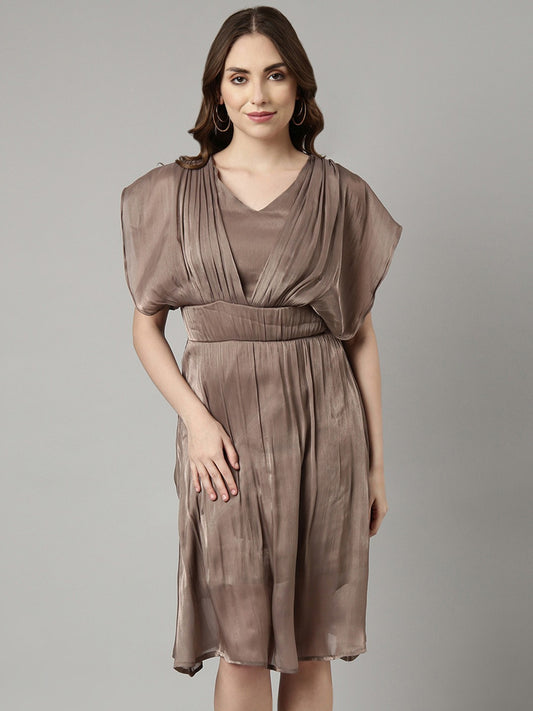 Out of StockSHOWOFF Brown V-Neck Georgette Sheath Dress