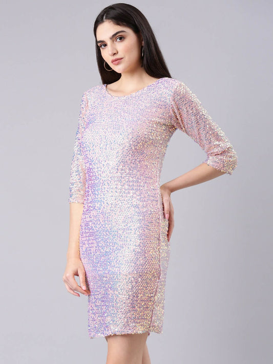 Out of StockSHOWOFF Pink Embellished Sequined Net Sheath Dress