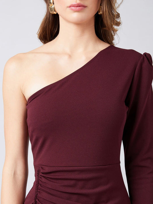 Sheetal Associates Burgundy Pleated One Shoulder Wrap Dress