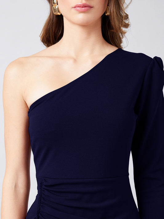 Sheetal Associates Navy Blue Pleated One Shoulder Wrap Dress