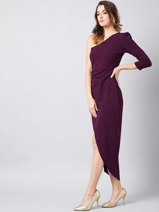Sheetal Associates Purple Pleated One Shoulder Wrap Dress