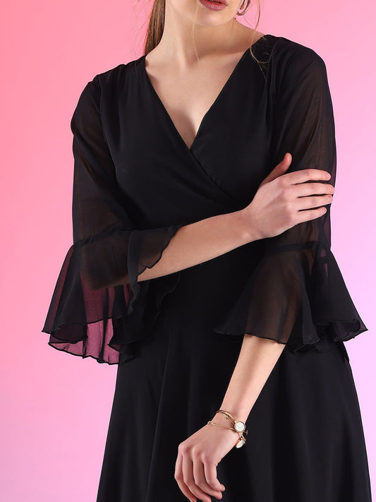 Sheetal Associates Black Flared Sleeve Wrap Maxi Dress