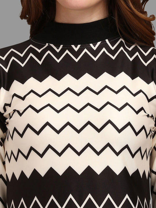 Purvaja Beige & Black Geometric Printed Bodycon Midi Dress