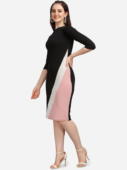 Purvaja Black & Peach Colourblocked Bodycon Midi Dress