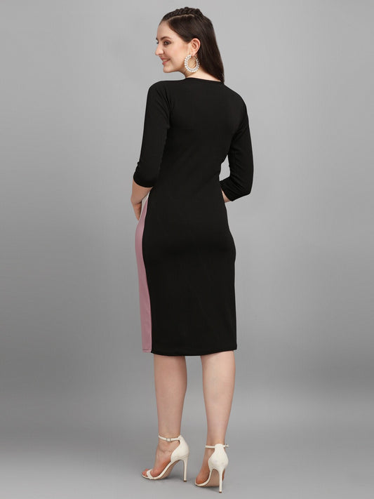 Purvaja Black & Violete Colourblocked Bodycon Midi Dress