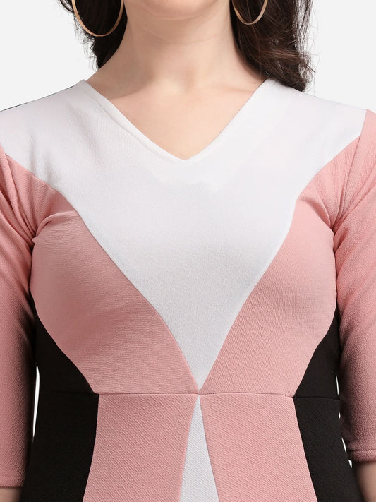Purvaja Peach Colourblocked Fit & Flare Midi Dress