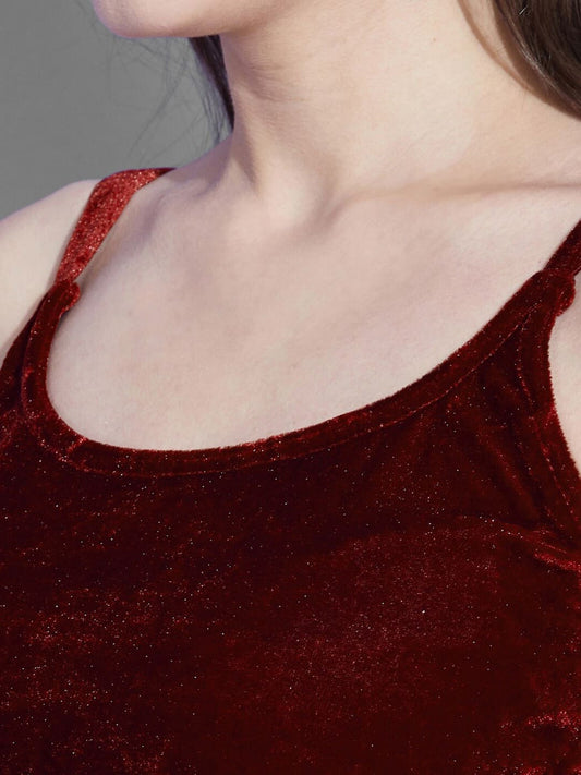 Selvia Maroon Solid Shoulder Straps Velvet Sheath Dress