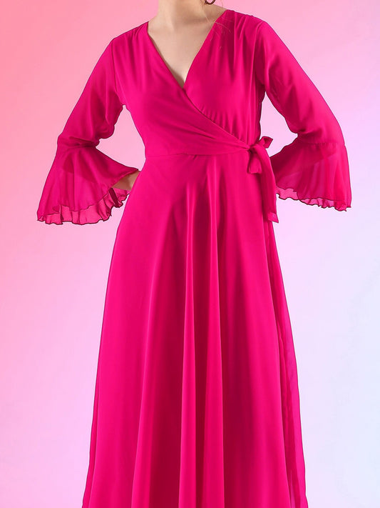 Sheetal Associates Pink Flared Sleeve Wrap Maxi Dress