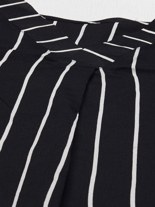 Selvia Black & White Striped V-Neck Shirt Style Top