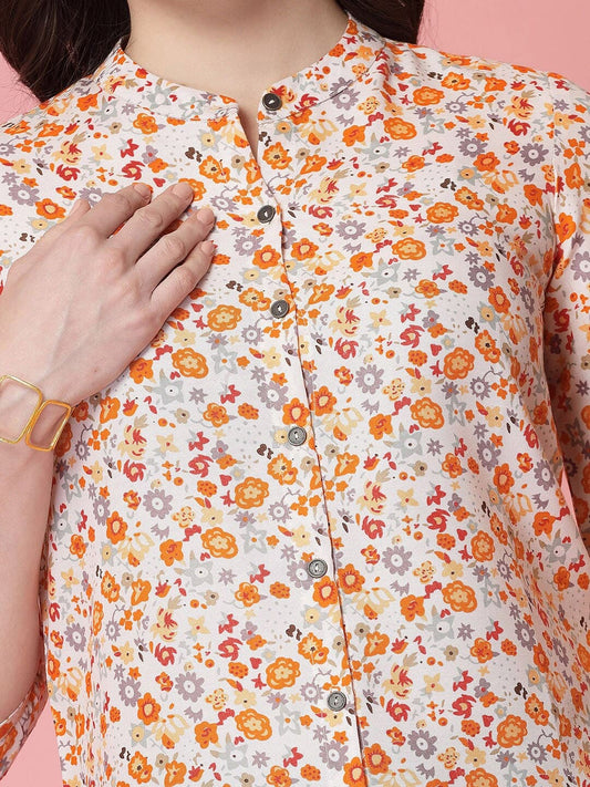 Selvia Floral Printed Mandarin Collar Casual Shirt