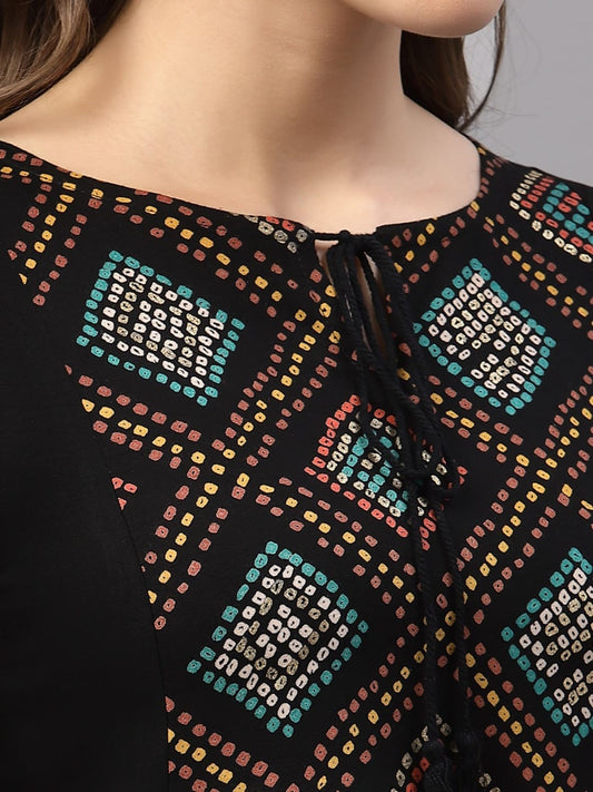 Out of StockSelvia Black Ethnic Motifs Printed Tie-Up Neck Top