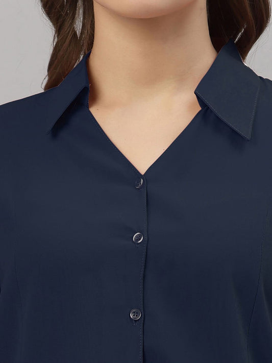 Out of StockSelvia Navy Blue Spread Collar Solid Shirt