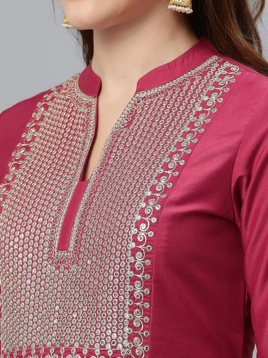 Out of StockSelvia Rose Pink Embroidered Mandarin Collar Tunic