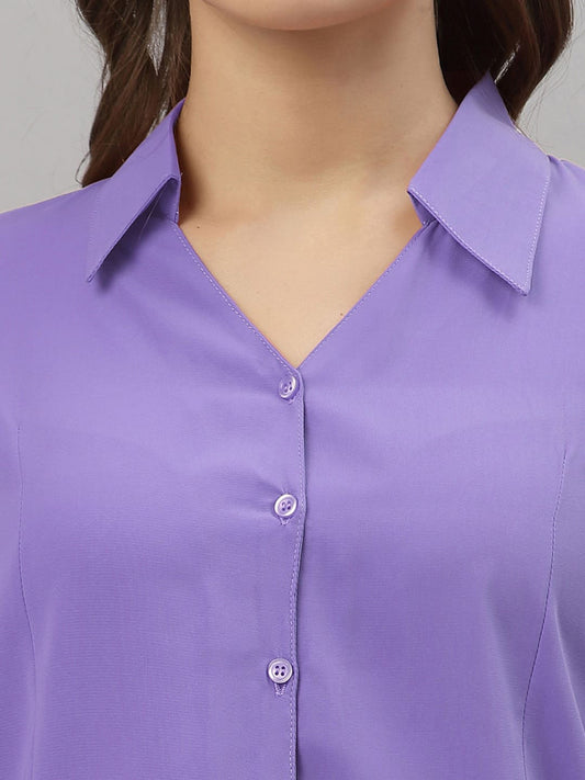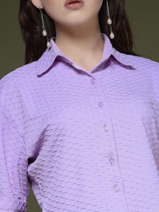 Selvia Purple Geometric Self Design Spread Collar Crop Casual Shirt