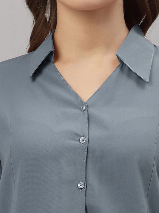 Out of StockSelvia Grey Spread Collar Solid Shirt