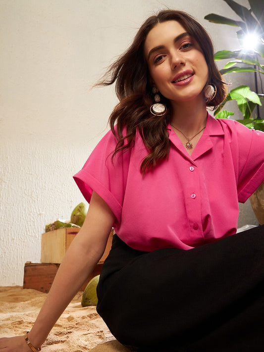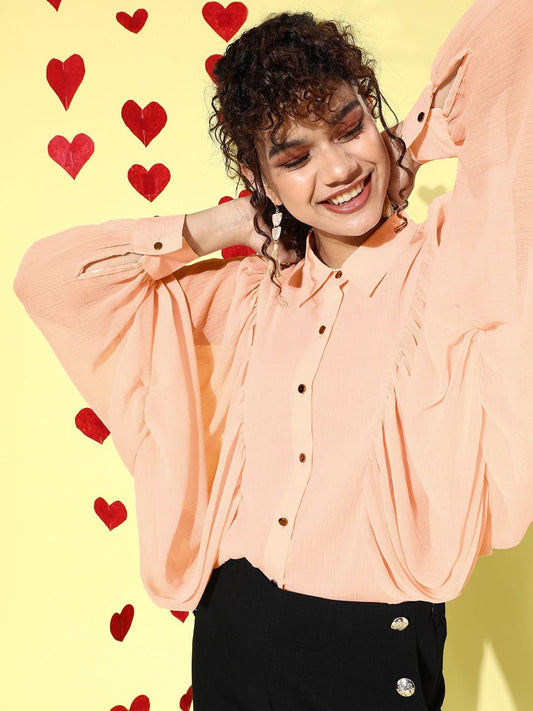Kassually Women Gorgeous Peach Solid Batwing Sleeves Shirt Top