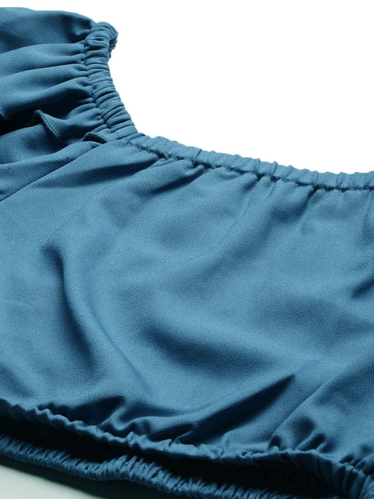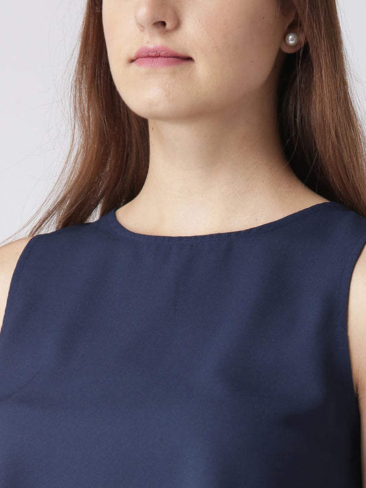 Kassually Women Navy Blue Solid A-Line Crop Top