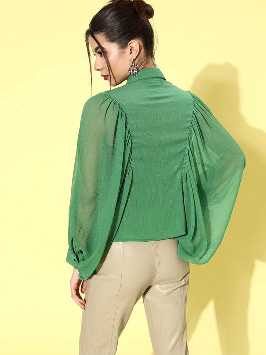 Kassually Women Gorgeous Green Solid Batwing Sleeves Shirt Top