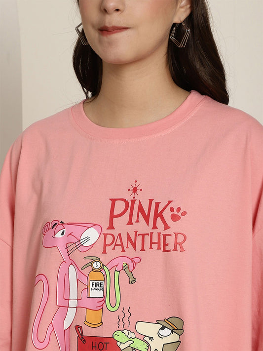 Pink Graphic Printed Drop-Shoulder Cotton Oversized T-Shirt