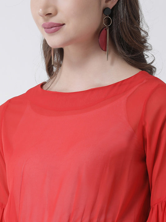 Kassually Women Red Solid Semi Sheer Blouson Crop Top
