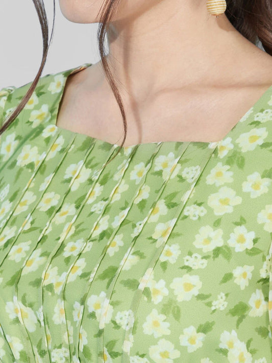 Out of StockSlenor Floral Printed Puff Sleeves Fitted Crop Top